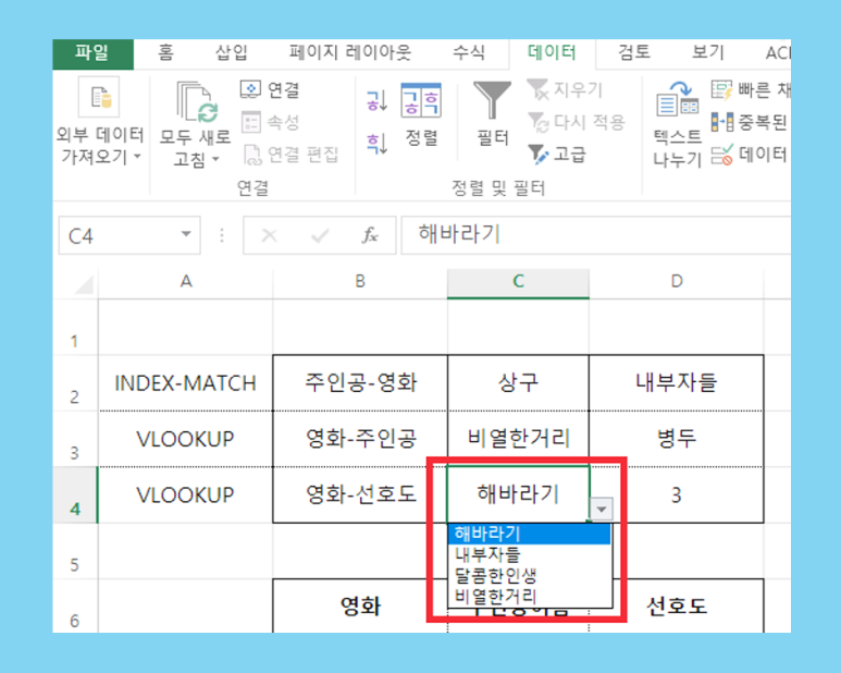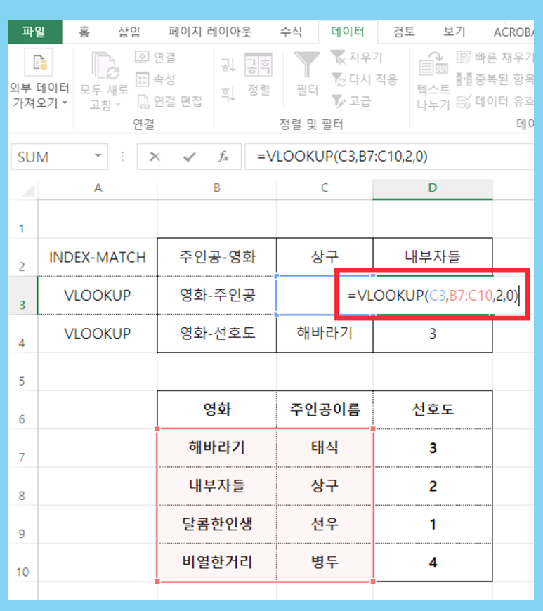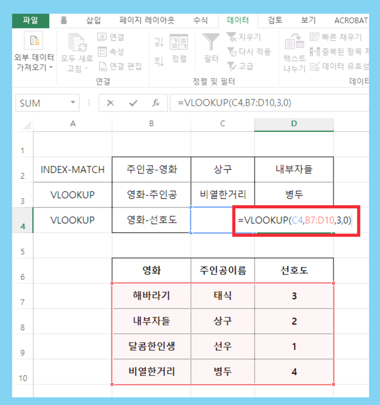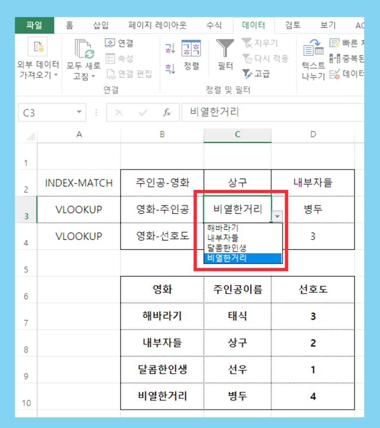 이번에는 VLOOKUP을 활용하여 해봅니다.