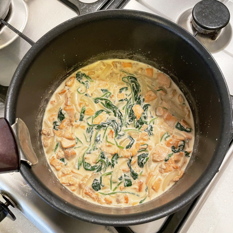연어시금치파스타를 만들어 주었어요.