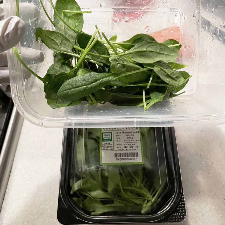 시금치는 베이비시금치, 연한 잎으로 준비했어요.