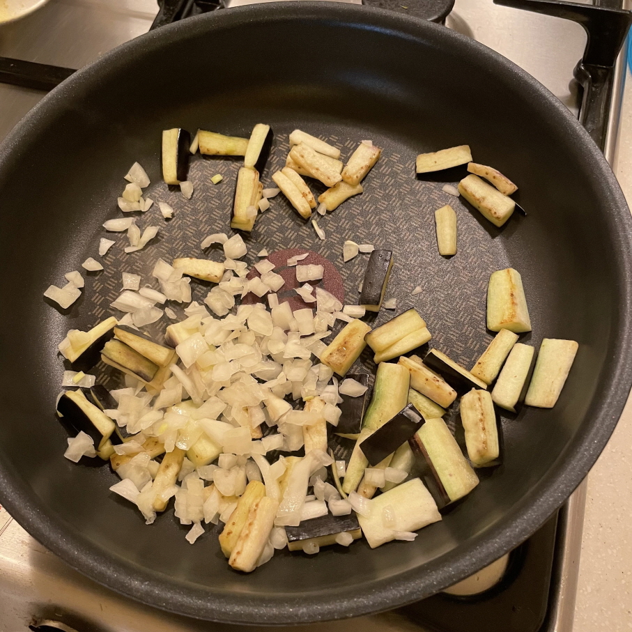 향이 나면 그 후에 돼지고기 가지 양파 볶고