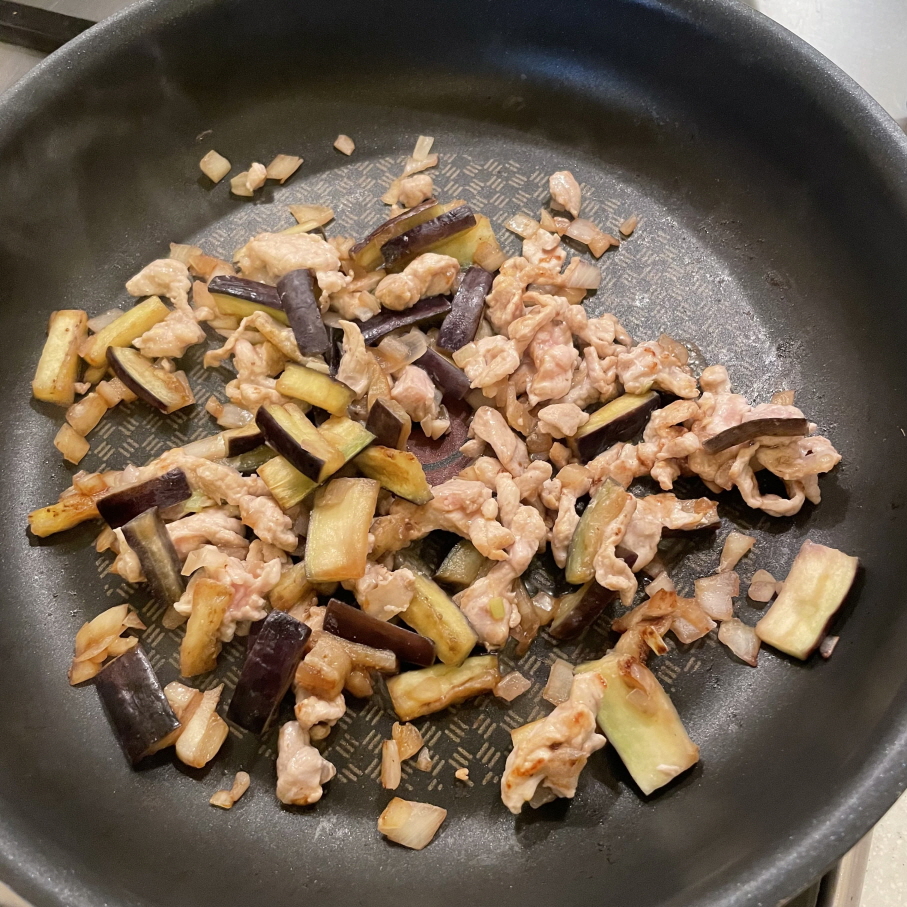 미소소스를 돼지고기 가지 양파와 함께 볶은